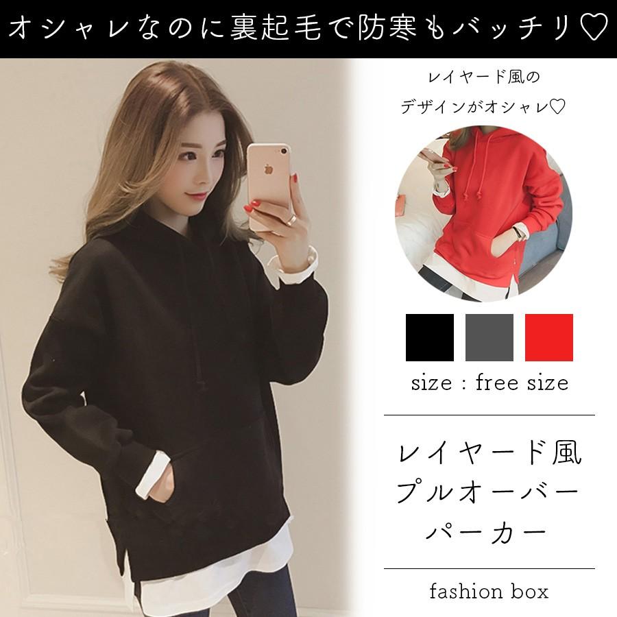 パーカー プルオーバー レディース レイヤード 風 フード トップス 長袖 トレーナー フリース 重ね着 シャツ 帽子 Fashion Box 通販 Yahoo ショッピング
